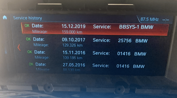 Der nächste Parameter sieht zunächst wie Müll aus, enthält aber alle erforderlichen Informationen: Datum, Kilometerstand, Händler, BMW-Flagge und alle Dienste.