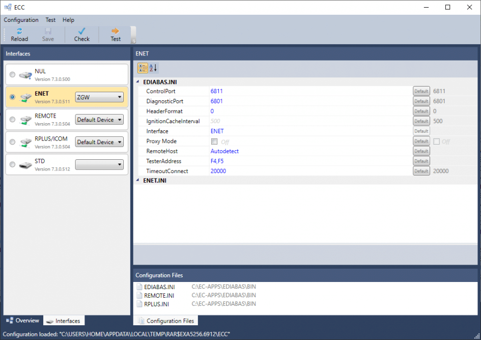 Um die Ediabas-Einstellungen mit neueren Versionen zu ändern, könnt ihr das mitgelieferte Tool ECC.exe (Ediabas Configuration Center) verwenden.