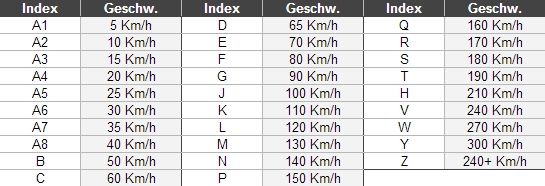 Beispiel oben 88Y = 560Kg Belastbar / 300km/h maximale zugelassene Geschwindigkeit