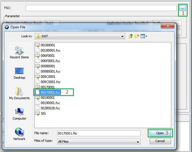 11.Drücke jetzt die obige Taste “…” und wähle die Datei “00170001.fsc” aus dem Archiv.