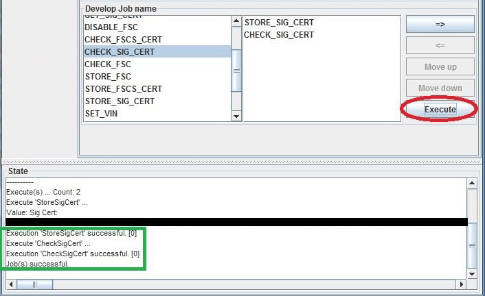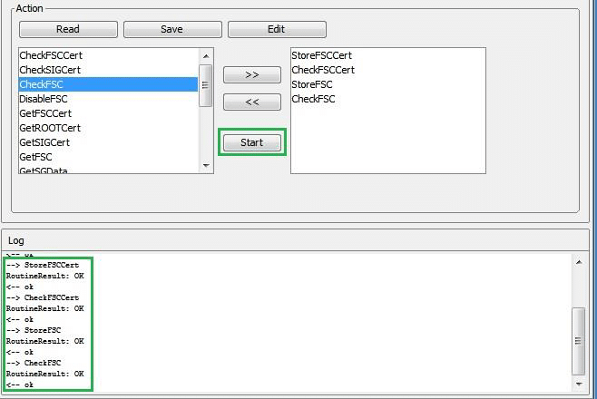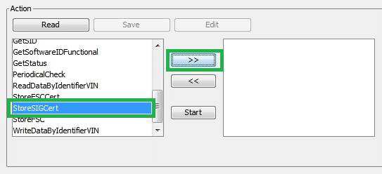 9.Wähle “StoreFSCCert” aus, drücke “>>” und öffnen Sie die Datei“001B0001.der” aus dem Archiv.