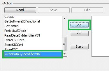 4.Entferne wieder “WriteDataByIdentifierVIN” aus dem rechten Fenster mit der Taste “<<”.