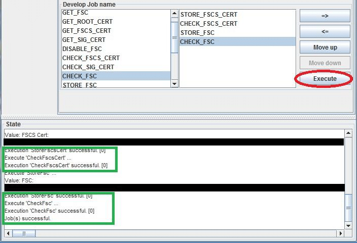 Blättere das Log Fenster und stelle sicher dass bei jedem “FSCSCertStatus” und “FSCStatus” “accepted” steht.