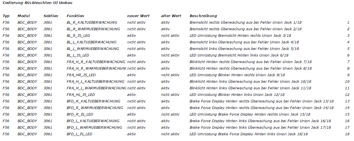Zusätzliche Codierung für Facelift-Halogen und US: