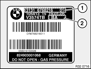 Die Fahrwerkausführung ist anhand des Etiketts auf dem Federbein / Stoßdämpfer identifizierbar.