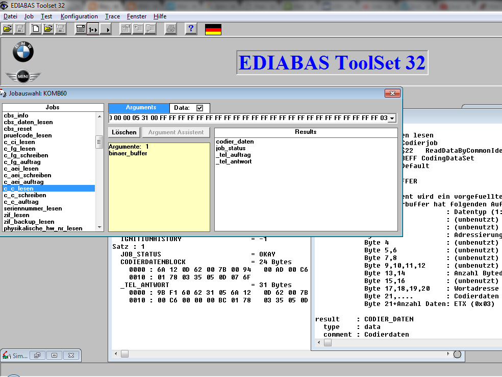 Den Job c_c_schreiben im Tool32 auswählen und den geänderten Buffer mit der neuen Checksumme als Argument eintragen.