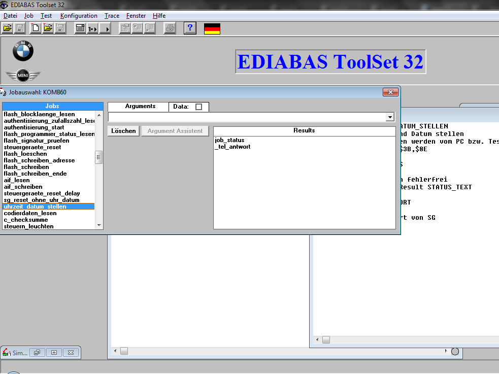 im Tool32 erledigt werden. Job auswählen und Argument leer lassen. Data nicht anhaken und Job einmal ausführen, F5.