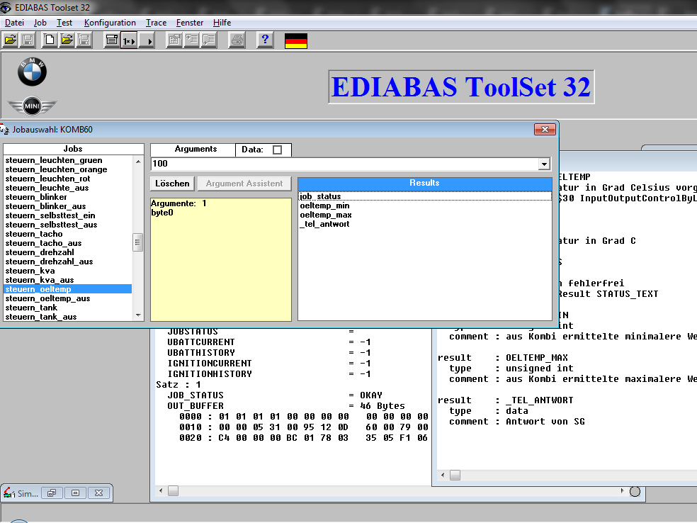 kontrolliert werden. Dazu einfach den Job auswählen und als Argument z.B. 100 (100°C) eingeben. Data nicht anhaken. Job einmal ausführen, F5.