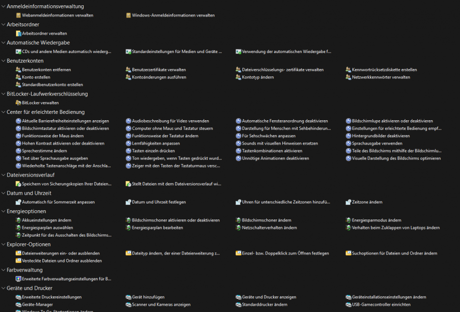 Anschließend verwandelt sich das Ordnersymbol in ein Symbol für Systemsteuerung, allerdings ohne einen Namen. Mit einem Doppelklick könnt ihr jetzt den Schnellzugriff öffnen und findet euch im Menü des Windows Master Control Panels wieder. Ihr solltet aber darauf achten, dass ihr nicht einfach Optionen ändert, die euch nichts sagen. In einigen Fällen könnte das die Funktionsweise von Windows einschränken. Zudem solltet ihr als Administrator:in den God Mode nicht auf Windows-Rechnern nutzen, auf die auch andere Nutzer:innen mit weniger Rechten Zugriff haben. Denn sie könnten über das Master Control Panel mehr Rechte erlangen und neue Accounts erstellen.