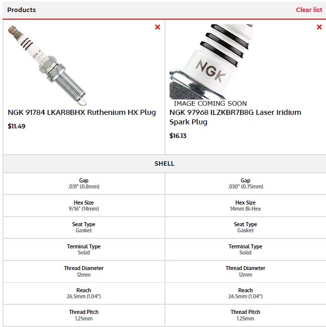 Es gibt geringfügige Unterschiede in der tatsächlichen Beschichtung der drei oben genannten Zündkerzen.